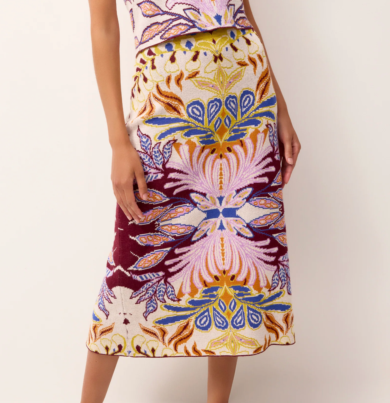 Clean lines and a dramatic print are one of our favorite style combos, and this fitted knit midi skirt leverages that appeal to perfection. Level up the look and make it a set with our matching Kim top.