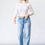 Discover our new Ellen Bow-Leg Jeans—a sleek, modern staple with a subtle bow-leg, designed to comfortably sit on your hips. The 27-inch inseam ensures a tailored look that’s ideal for everything from casual errands to drinks with friends.