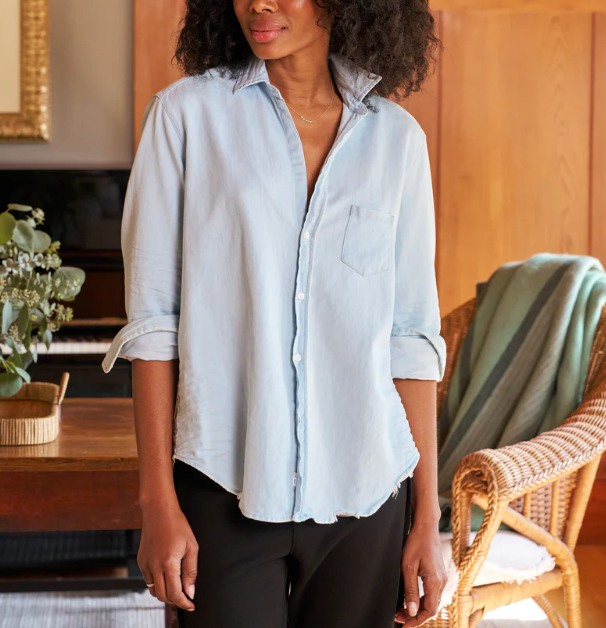 Eileen Relaxed Button-Up Shirt in Classic Blue With Tattered Wash