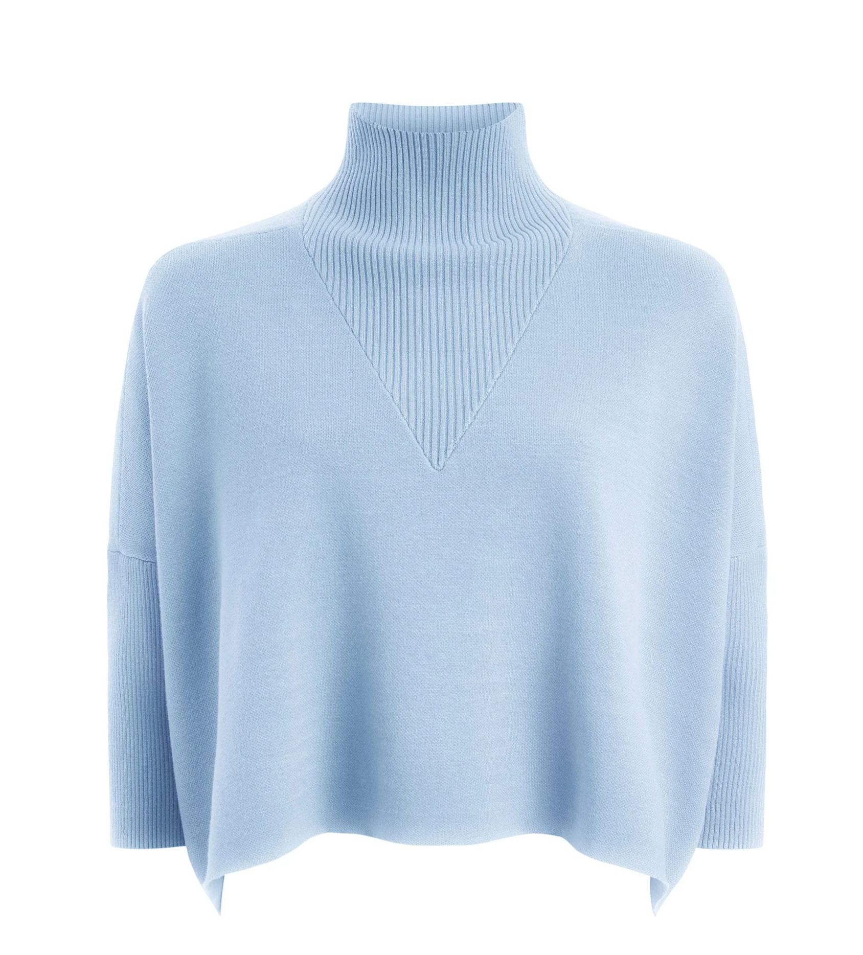The definition of "effortless," our Claudie popovers pair beautifully with your favorite denim, and extend the wearability of dresses and skirts well into fall and winter. The cropped body features a boxy fit with three-quarter-length batwing sleeves, and refined ribbed knit detailing at the neck and sleeves.