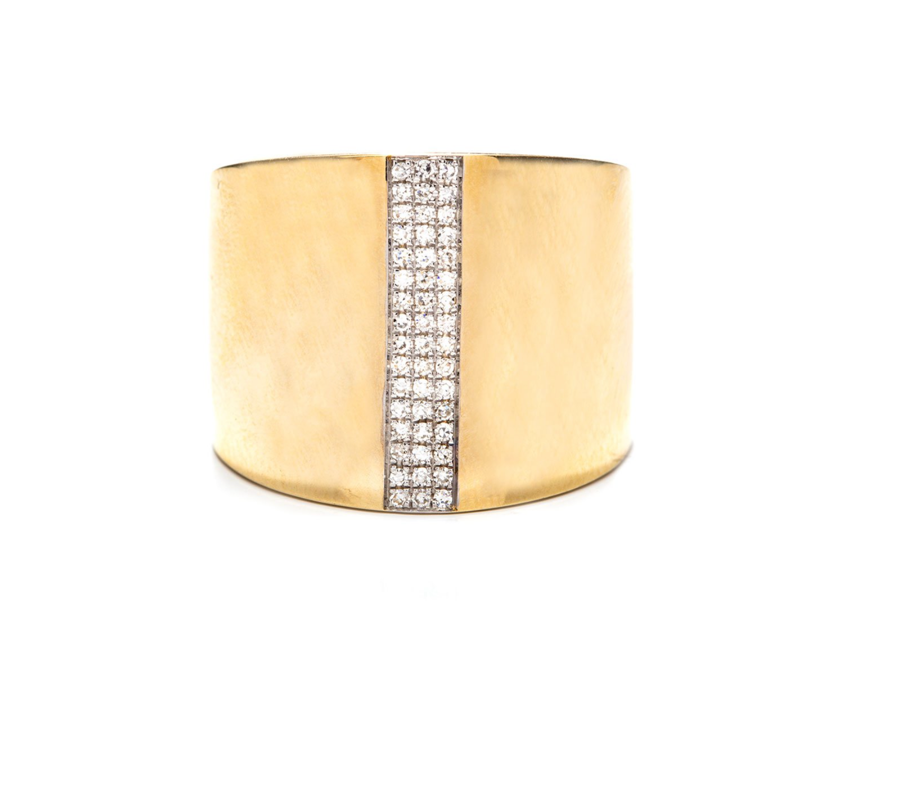 14K Solid Gold Statement Ring with Diamond Pave Detail