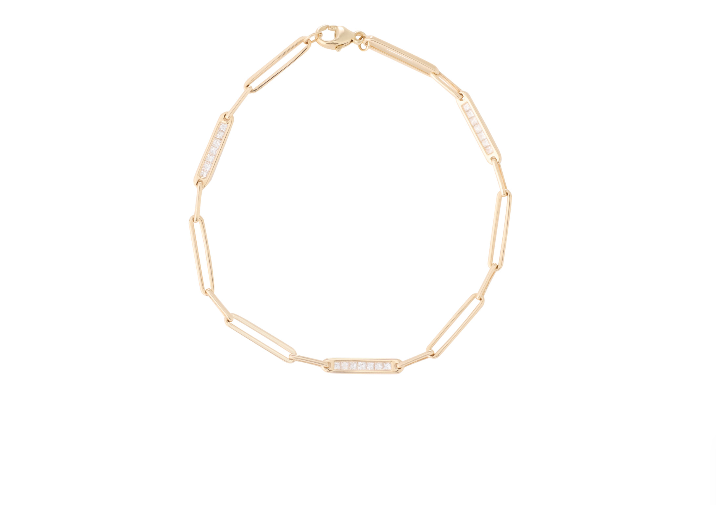 Paper Clip Bracelet With 3 Inlayed Diamond Links