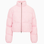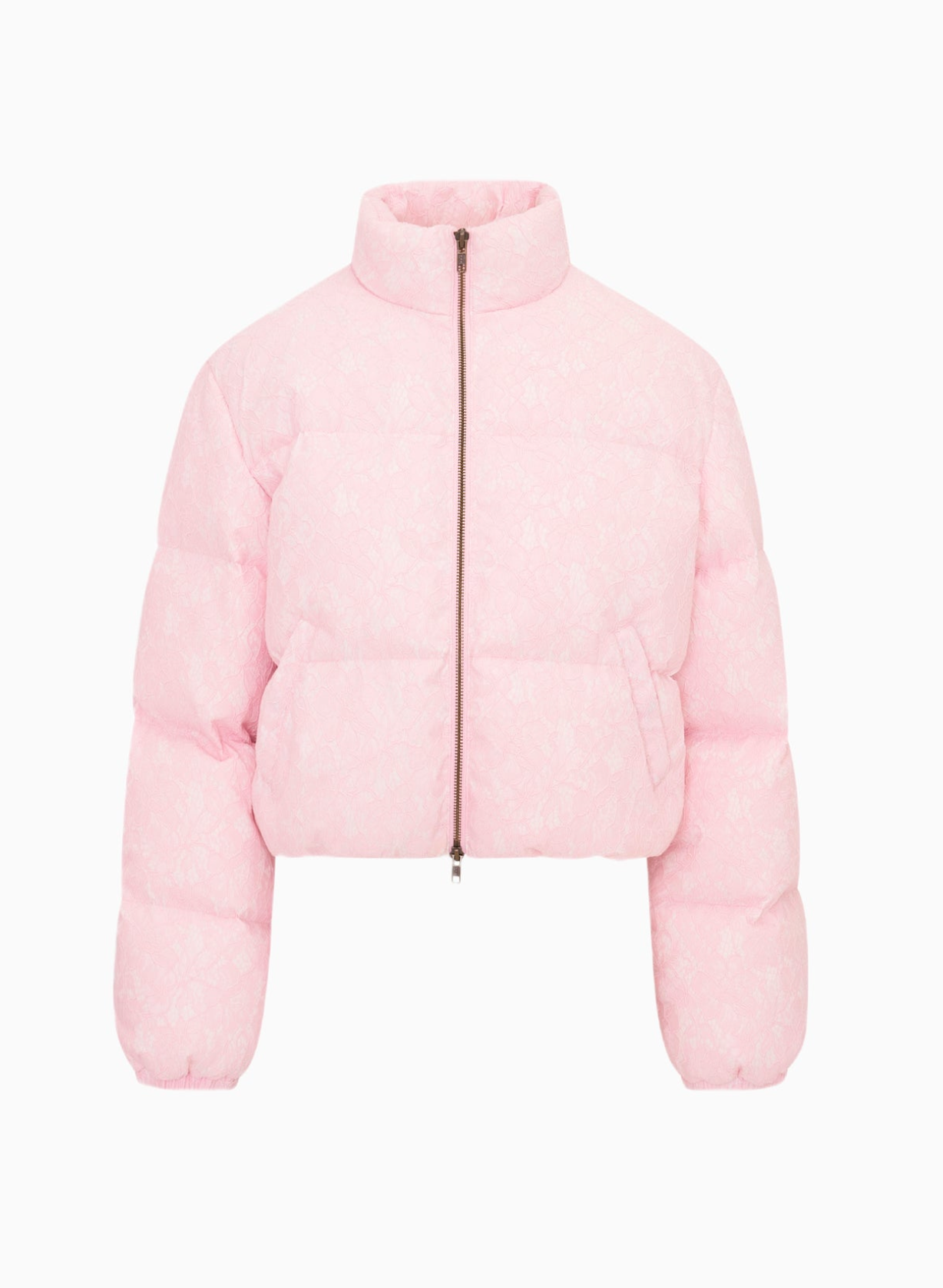 The Celesta Jacket reimagines outerwear with a feminine touch. Designed from quartered lace bonded to lightweight nylon, this cropped puffer blends warmth with delicate detail. Filled with down insulation, it offers cozy protection while maintaining a romantic silhouette. Full sleeves with elastic cuffs, a high collar, and slash pockets at the waist balance function and style, and a front zipper closure makes it effortless to wear. Quilted and cropped, the Celesta is the must-have piece for cold weather layering.