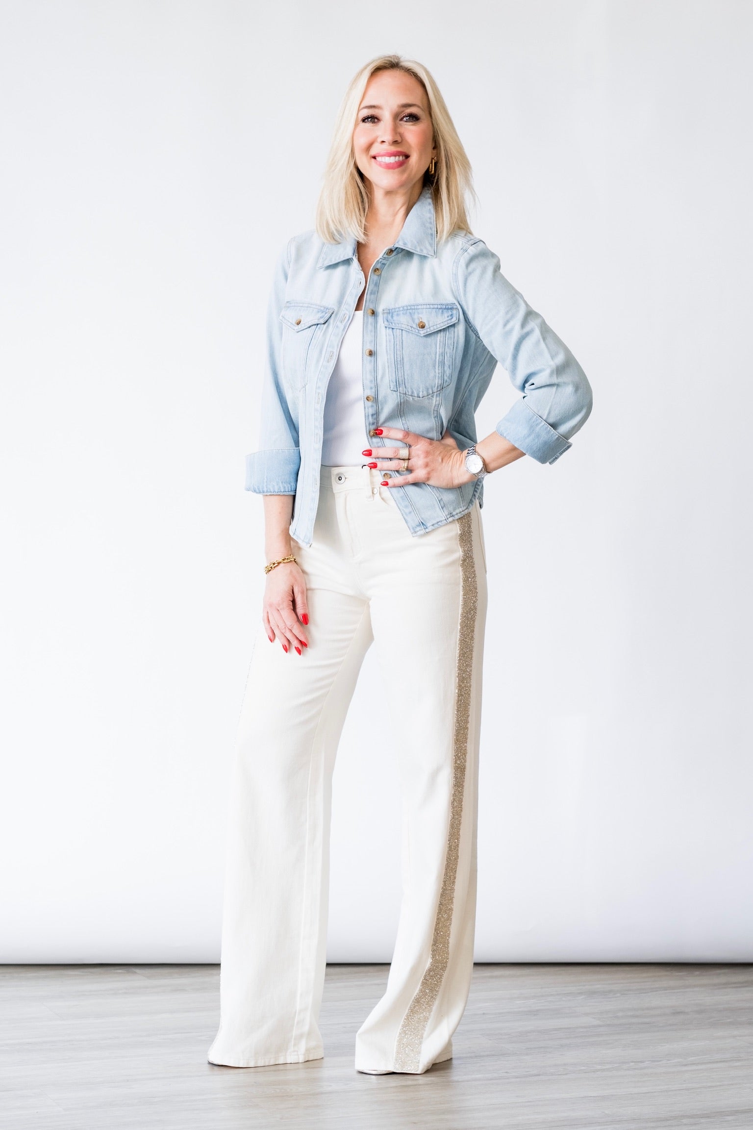 Elevate your everyday with the Cadence Shimmer Stripe Pant in Vanilla Creme. Designed with a refined, relaxed silhouette, this breezy essential blends effortless polish with a hint of shimmer for subtle impact. The tonal stripe detailing adds depth and dimension, while the lightweight fabric ensures fluid movement and all-day comfort. Perfectly tailored for warm-weather dressing with a touch of shine.