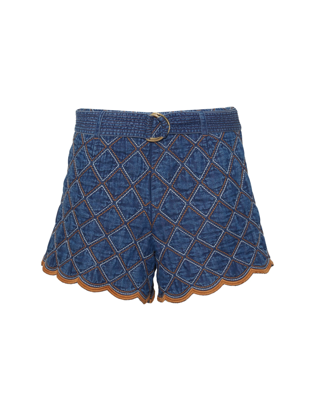 The Violet is a high waisted short with a princess seam and wide-cut legs. Done in our quilted denim, the Violet Short looks great paired with a blouse or the matching Marvis Jacket.