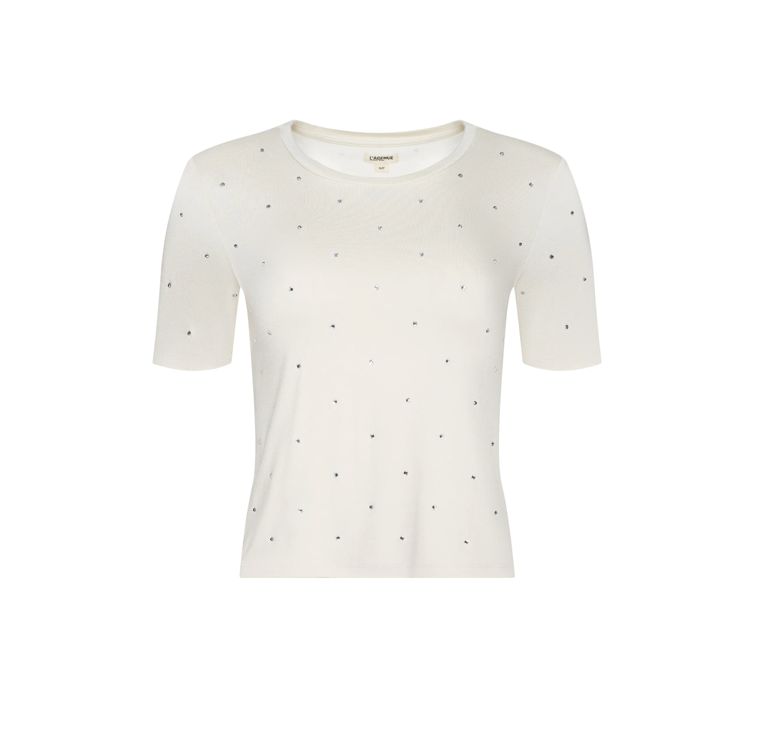 Stormy Embroidered Crew Neck Tee in Vintage White