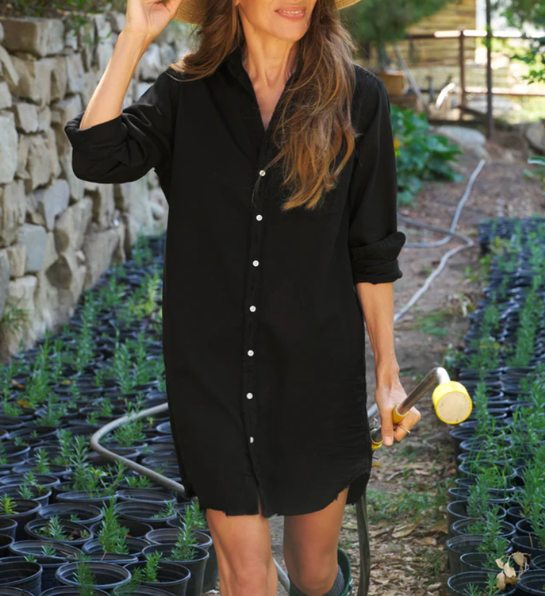 Consider Mary your four-seasons favorite. Ridiculously flattering thanks to a loose silhouette and just-above-the-knee hemline, this classic shirtdress moonlights as a breezy cover-up and works overtime on the weekend paired with pants.
