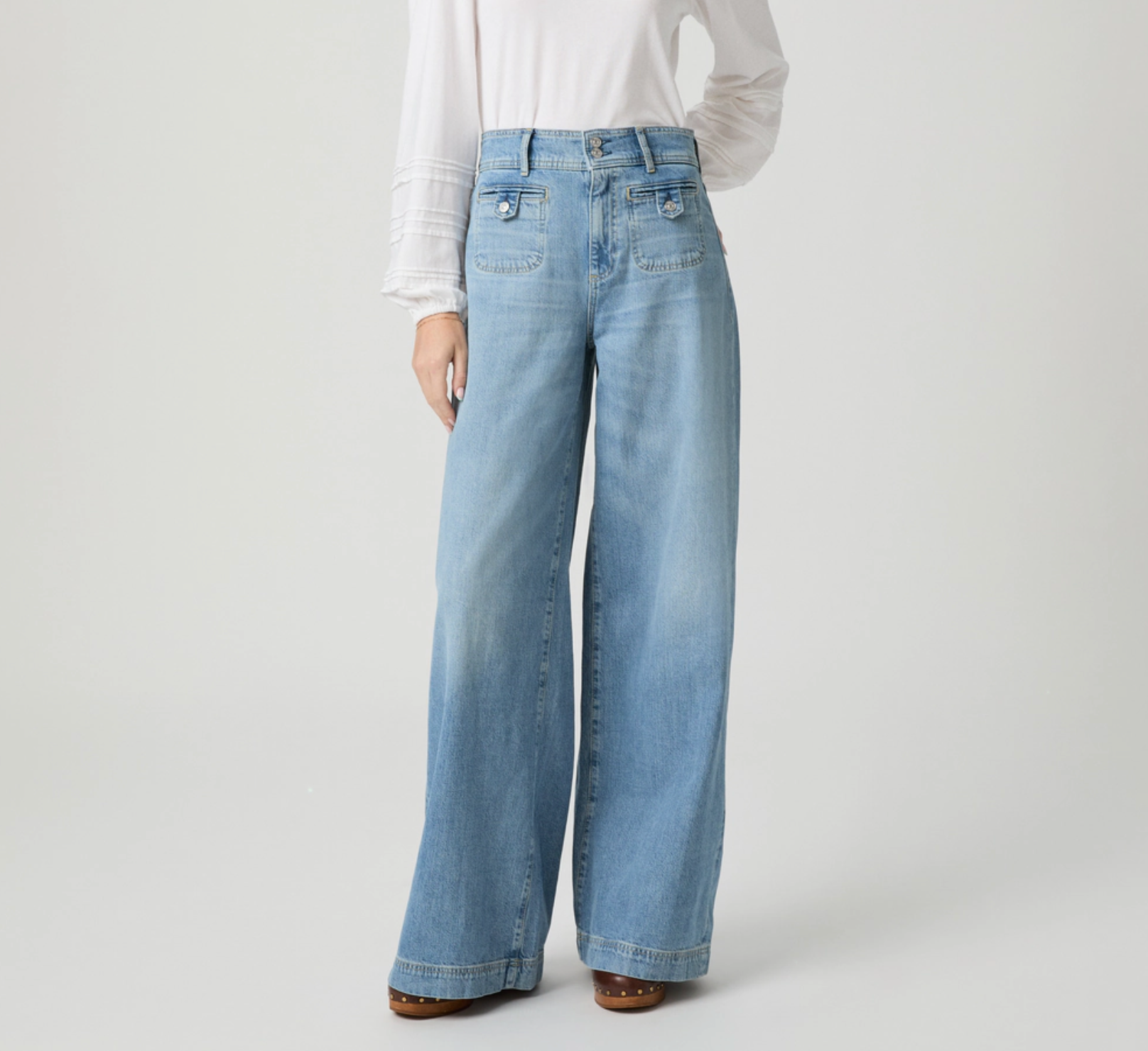 The Cameron Wide Leg features a high rise with a relaxed wide leg. In a light vintage-inspired wash with a wide waistband, double button closure, and welt stitch-through pockets, this pair is crafted from our Rigid denim with a soft hand-feel for premium comfort.