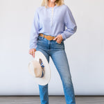 The Henley Pullover in Azureous Combo by Design History is a stylish and cozy layering piece, perfect for effortless everyday wear. Crafted from a soft, lightweight knit, this pullover offers a relaxed fit that drapes comfortably while maintaining a polished look. The Azureous Combo features a blend of cool, refreshing blue tones, adding a modern and eye-catching touch to the classic Henley design. With a partial button placket, ribbed cuffs, and hem, it strikes the perfect balance between casual comfort and refined elegance. Pair it with denim for a relaxed weekend look or style it with tailored pieces for an elevated yet cozy ensemble.