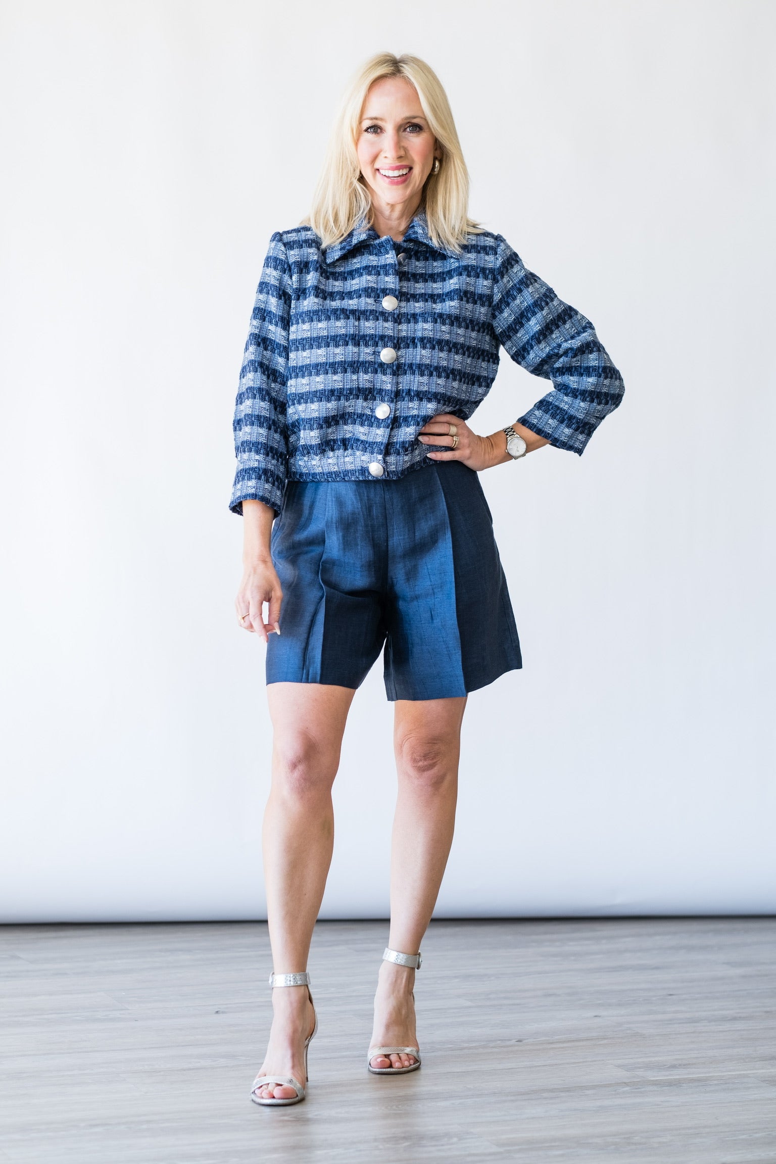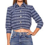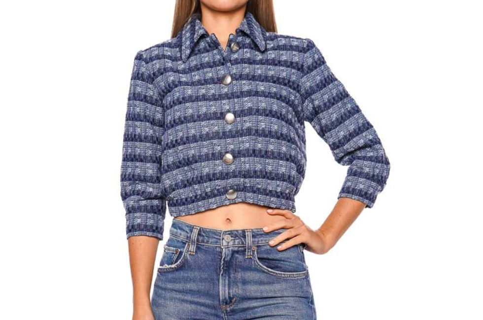 Jia Crop 3/4 Sleeve Jacket in Blue Multi Stripe Tweed