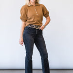 The Puff Sleeve Sweater in Butterscotch by Design History is a chic and cozy piece that adds a touch of sophistication to any wardrobe. Made from a soft, breathable knit fabric, this sweater offers a relaxed fit while the puff sleeves bring a fashionable and feminine silhouette. The Butterscotch hue, a warm golden tone, adds a vibrant pop of color, making it perfect for elevating both casual and more dressed-up looks. Designed with a classic crew neckline and ribbed cuffs, this sweater can be paired with everything from tailored trousers to denim, offering a versatile and stylish option for any occasion.