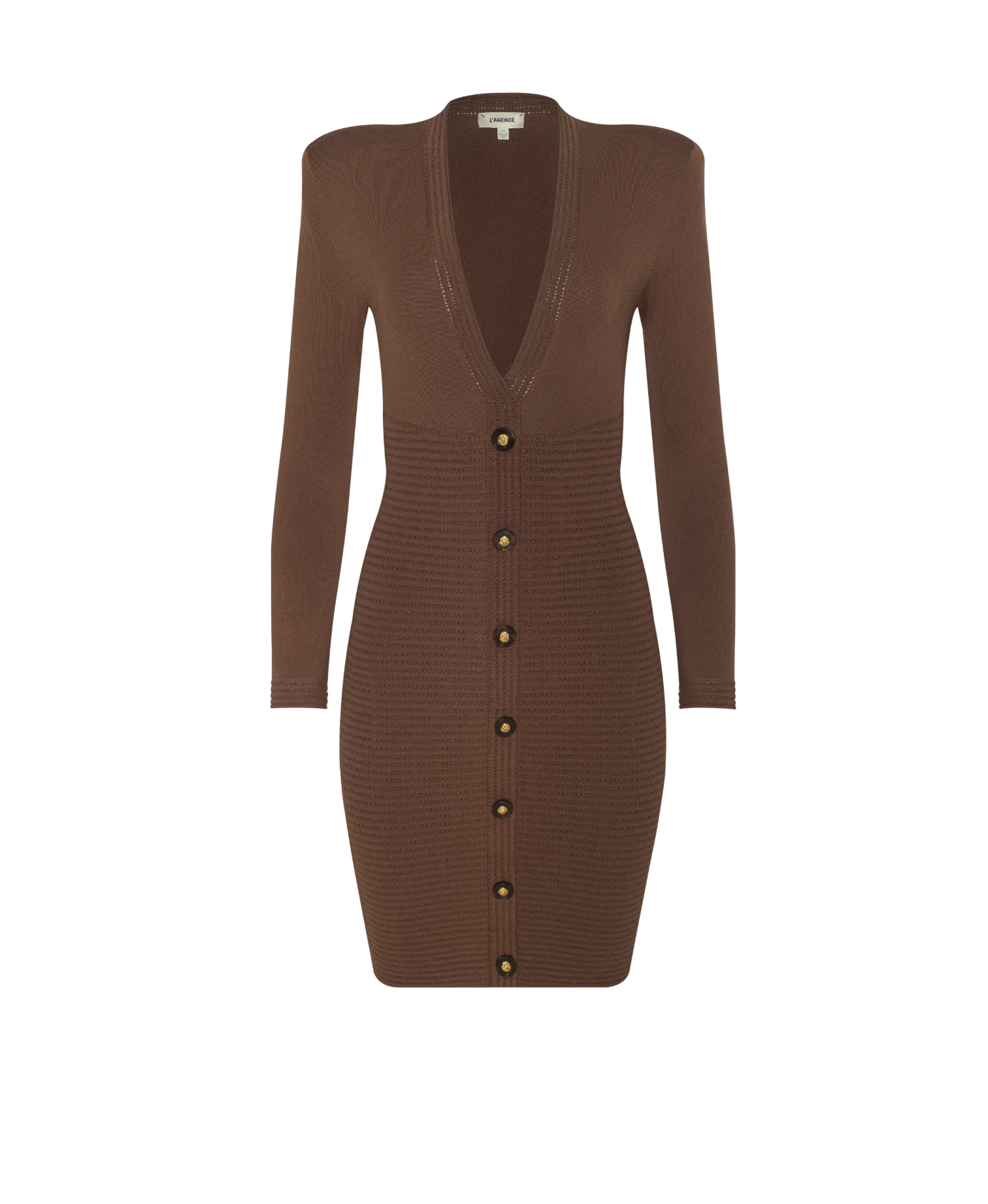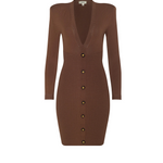 Taru Button Front Knit Mini Dress in Sepia Brown