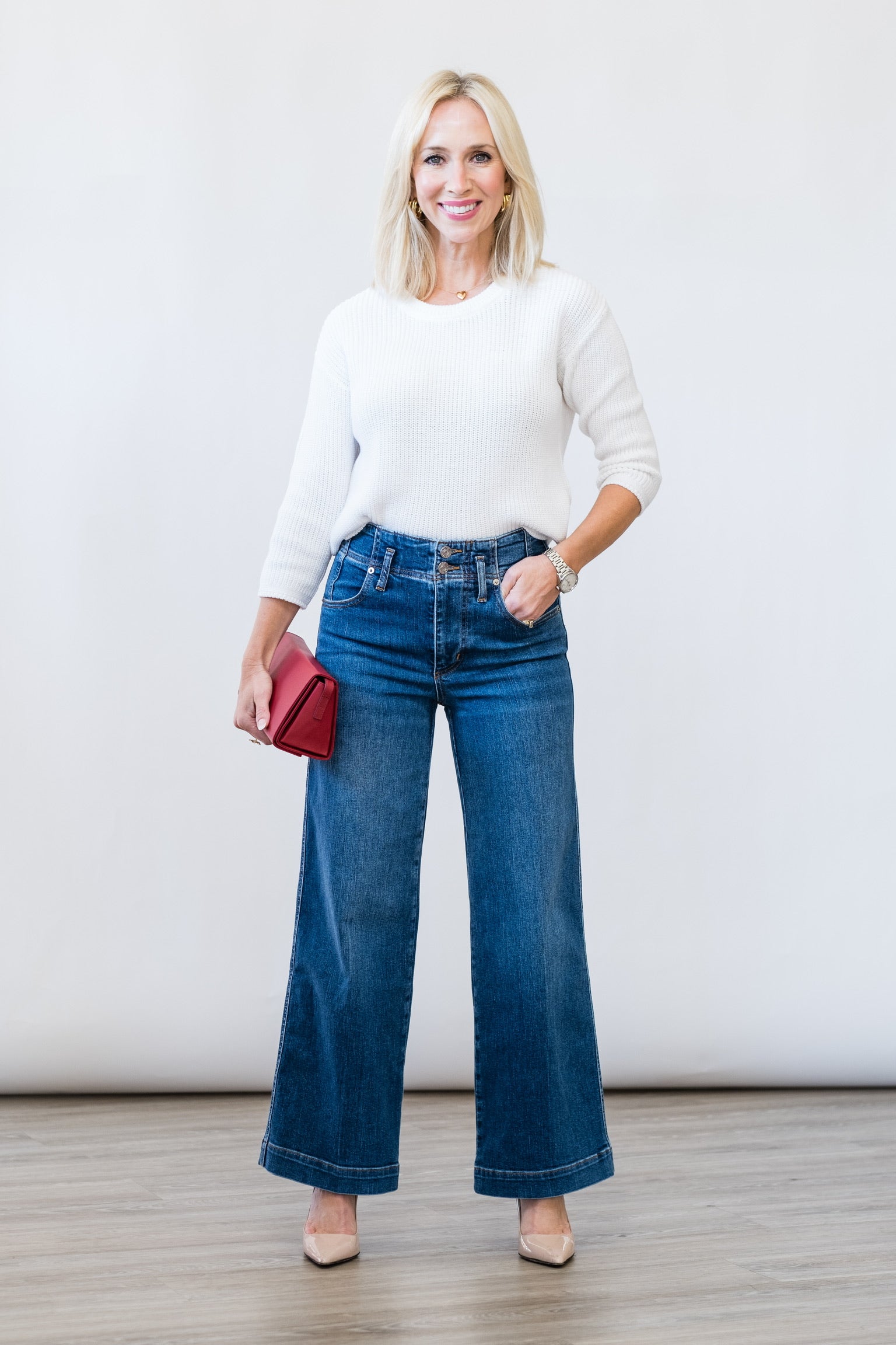 The Seamed Wide Trouser Crop Jean in Charity delivers effortless polish with a modern, laid-back feel. Designed with a flattering high rise and a wide-leg, cropped silhouette, this jean is elevated by clean seaming details that create a tailored, lengthening effect. The Charity wash offers a fresh, versatile look that pairs seamlessly with everything from crisp blouses to relaxed knits. Finished with a structured yet comfortable fit, this style strikes the perfect balance between refined and everyday, ideal for dressing up with heels or keeping it casual with flats or sneakers.